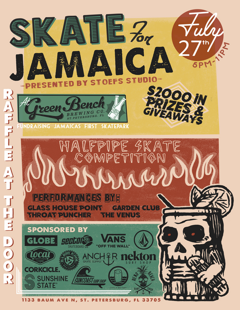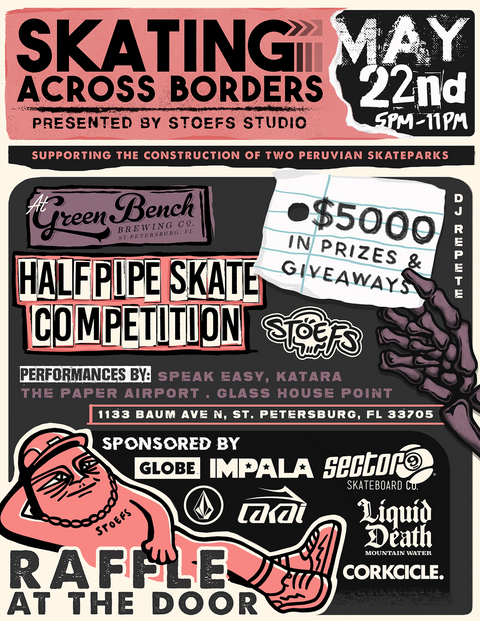 In addition to the skate comp and fundraiser Stoefs Studio and Green Bench Brewery will release a limited-edition beer collab with proceeds benefiting the charity's work. Both canned and draft will be available!